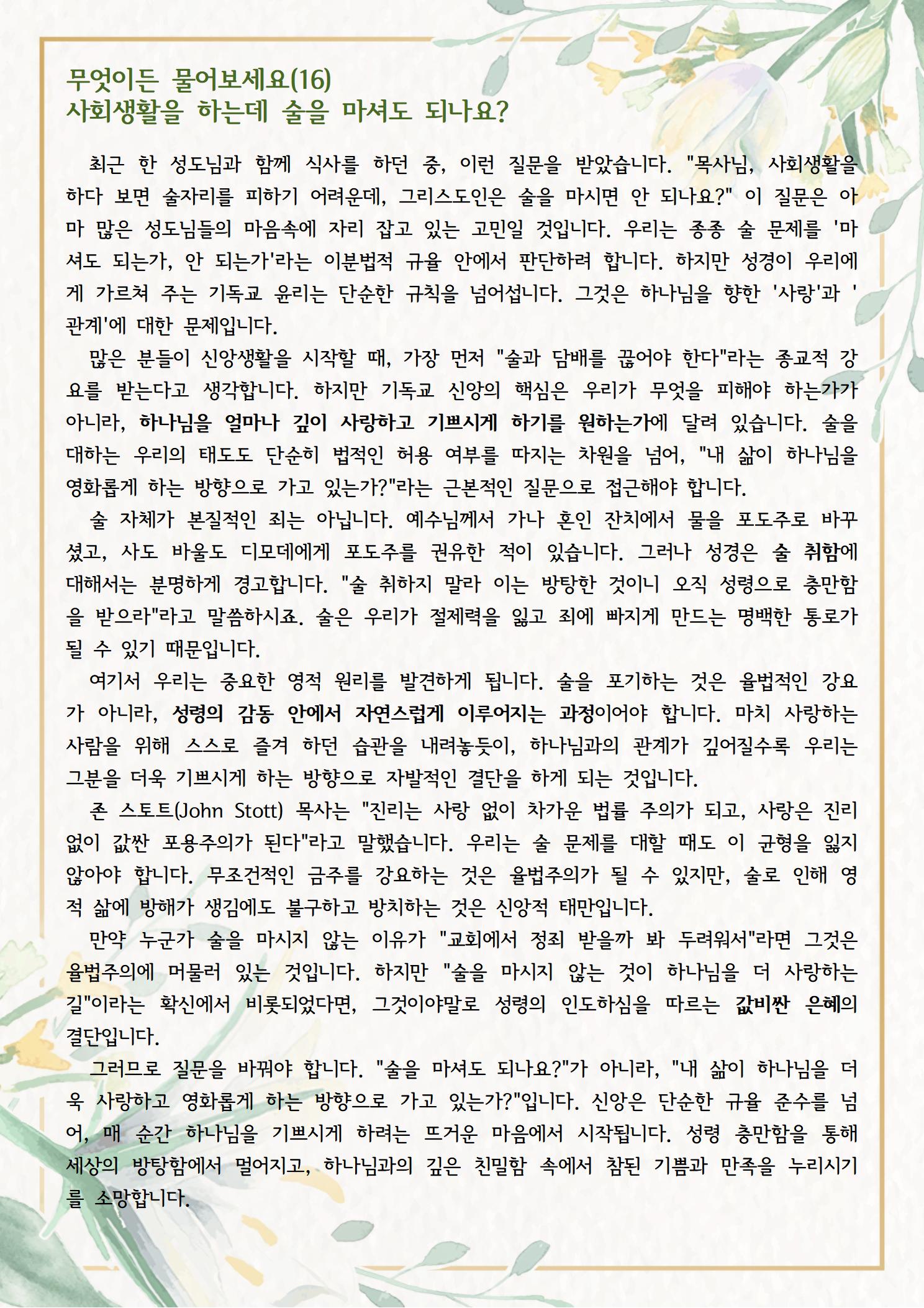 무엇이든 물어보세요(16) 사회생활을 하는데 술을 마셔도 되나요