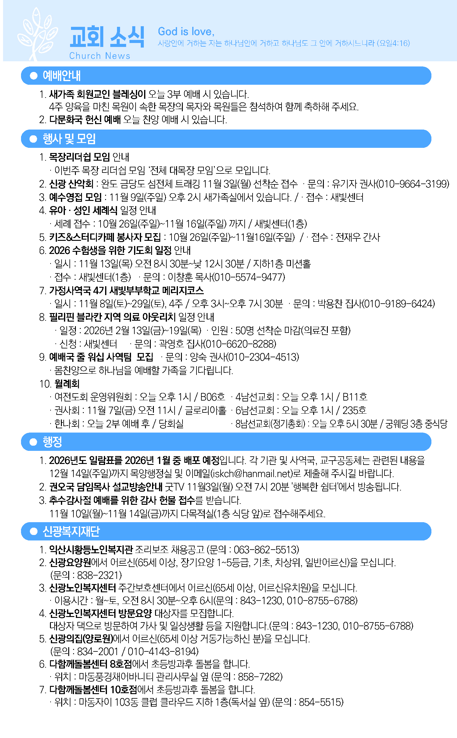 2025년 11월 2일(주일) 교회소식입니다.