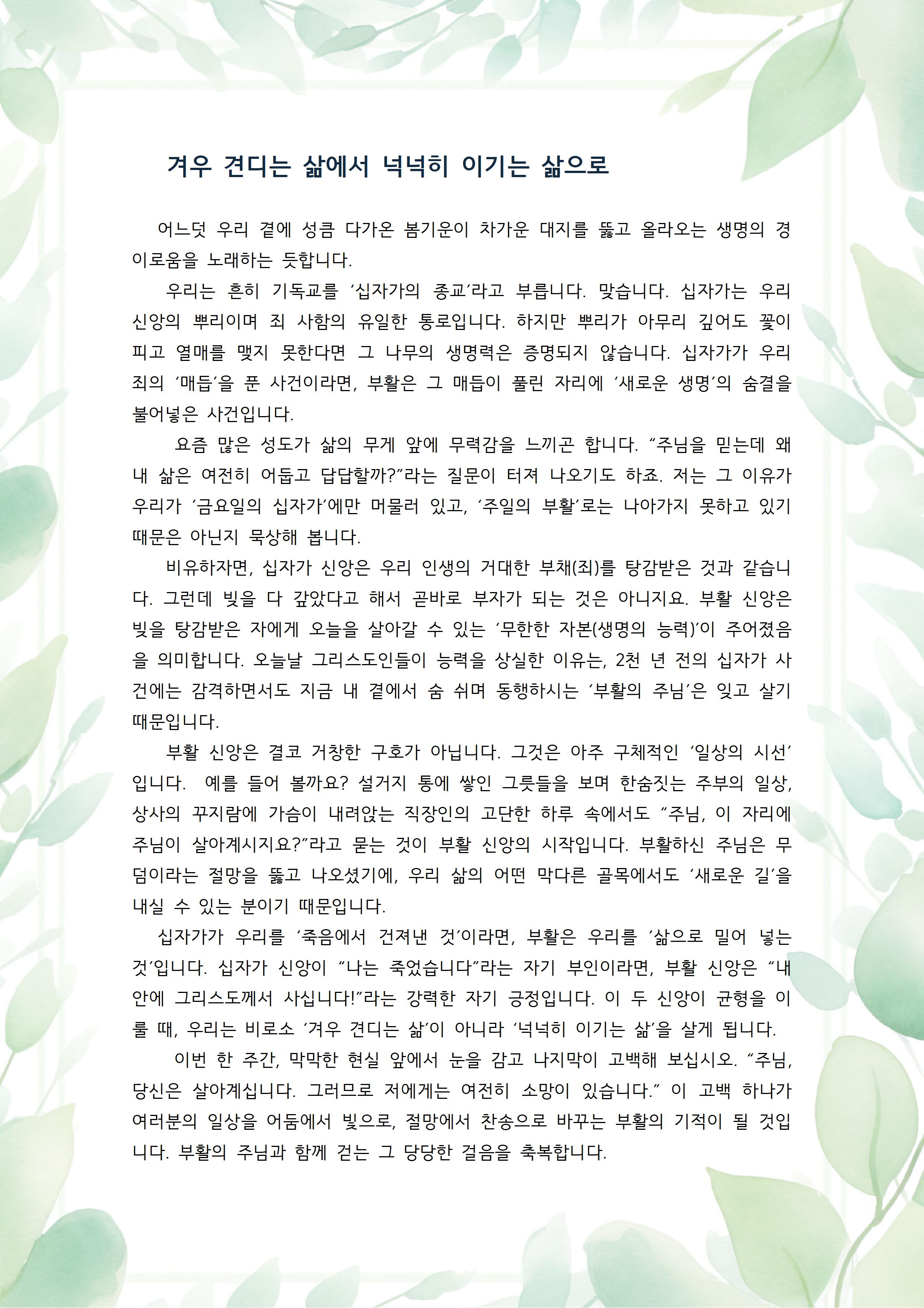 겨우 견디는 삶에서 넉넉히 이기는 삶으로