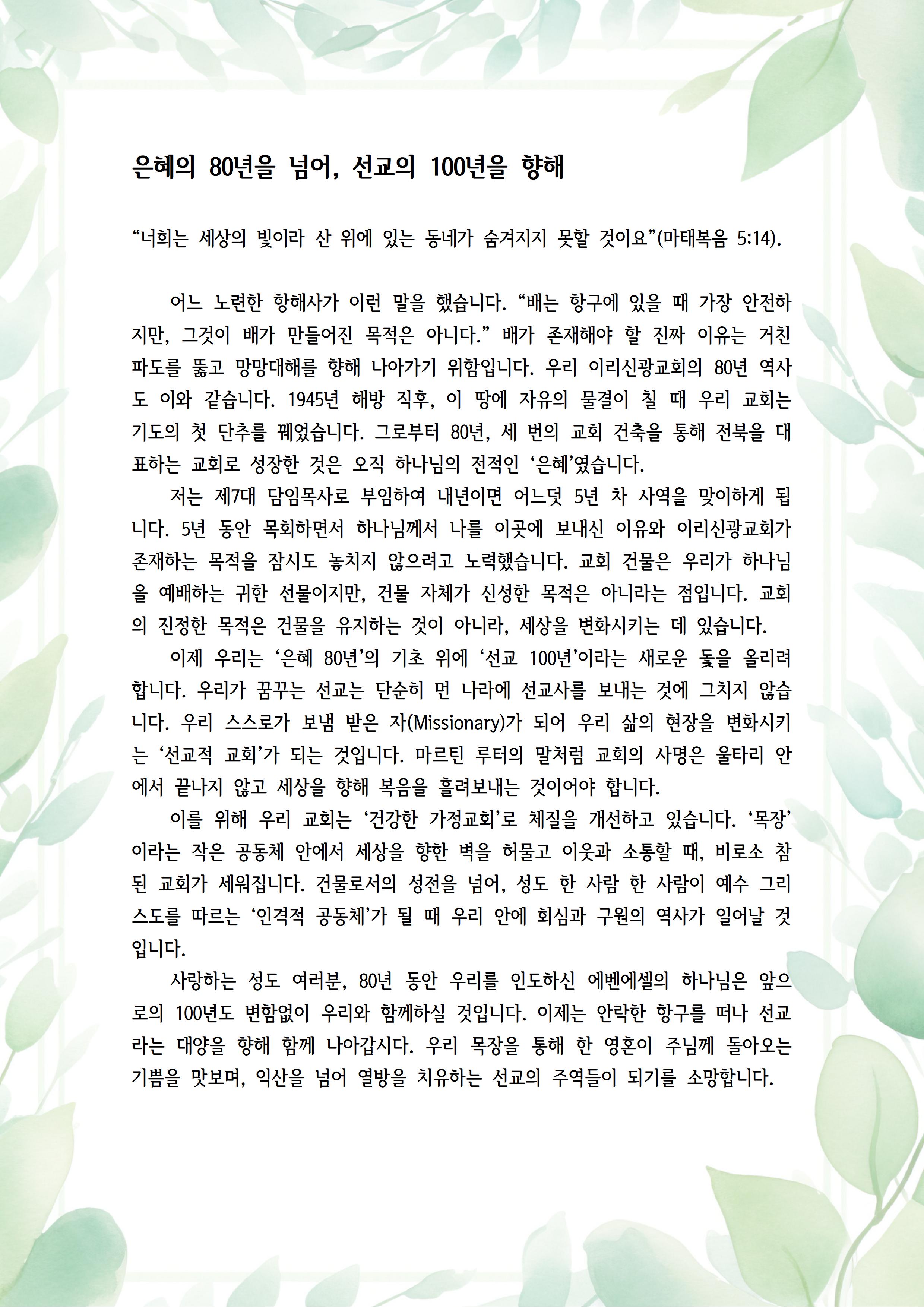 은혜의 80년을 넘어, 선교의 100년을 향해