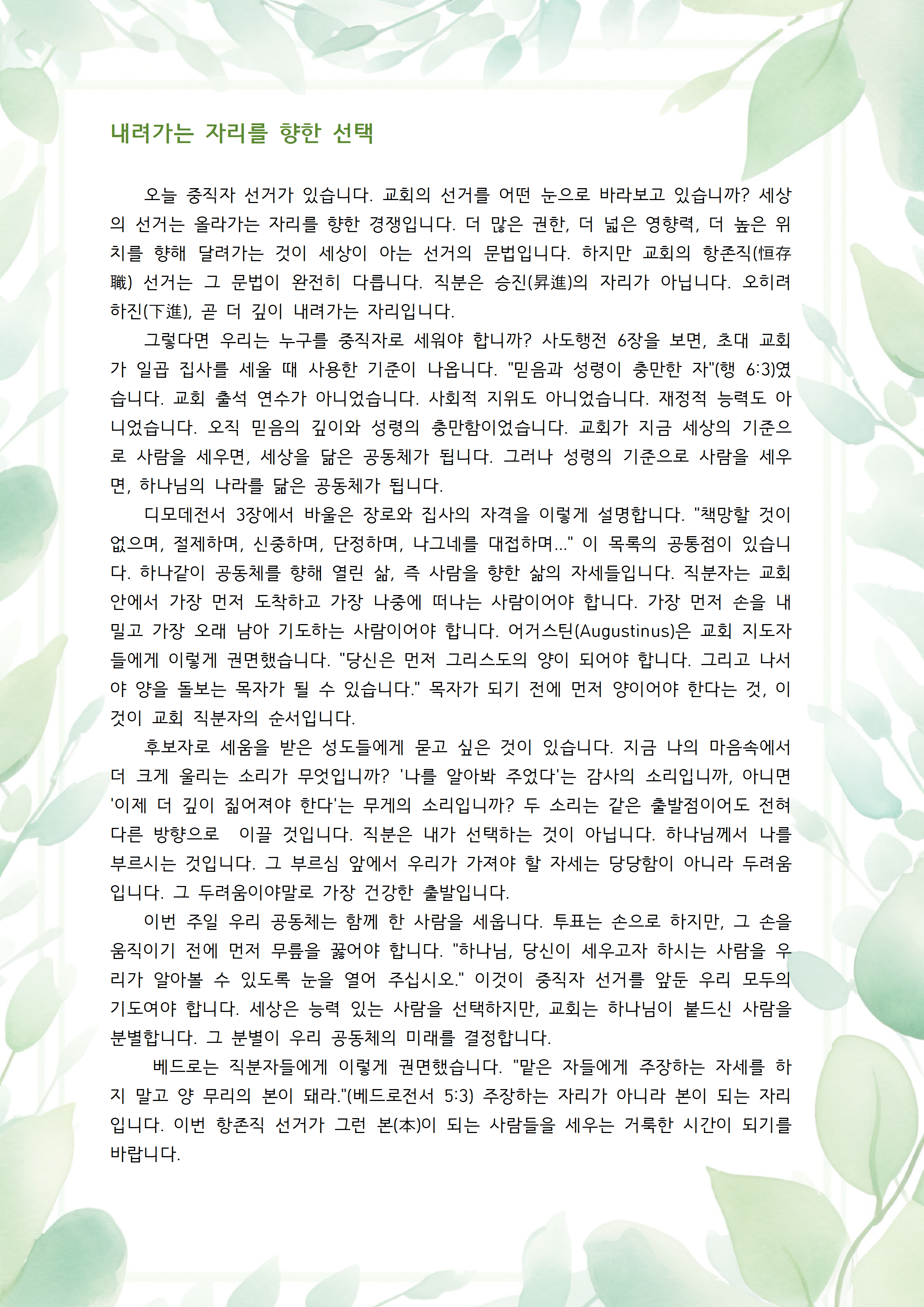 내려가는 자리를 향한 선택