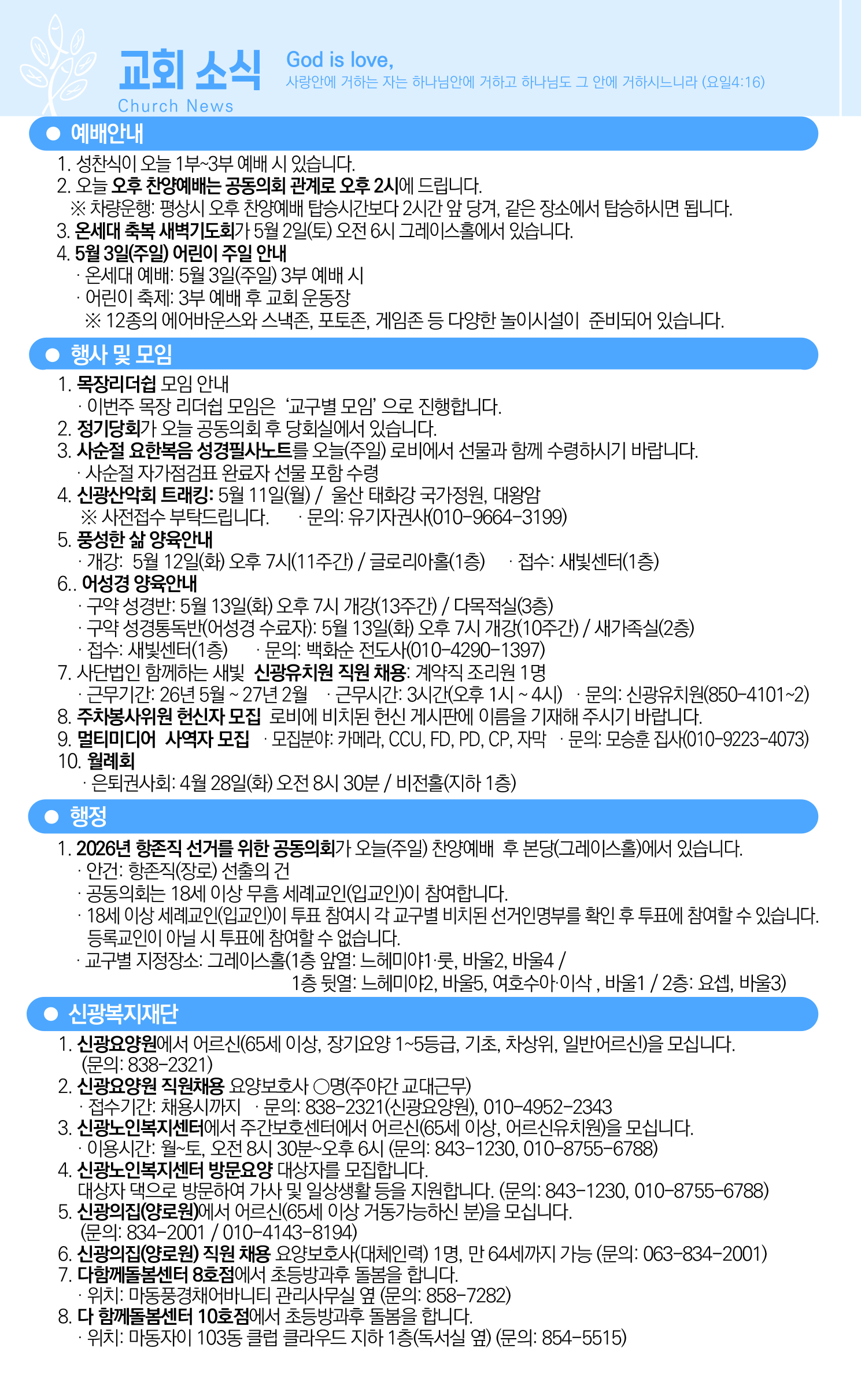 2026년 4월 26일(주일) 교회소식입니다.