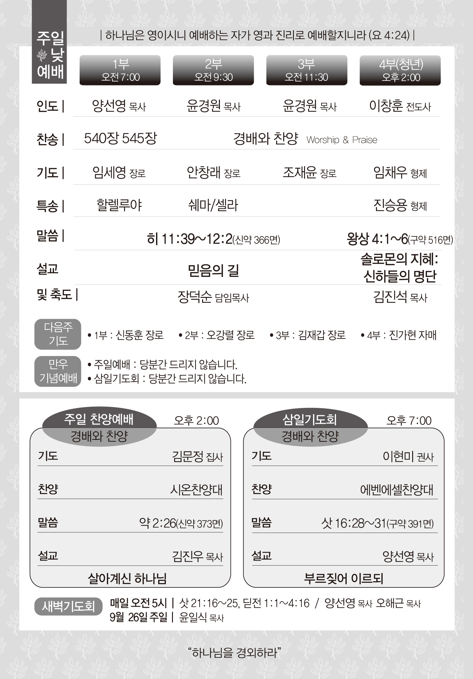 주일찬양예배&삼일기도회